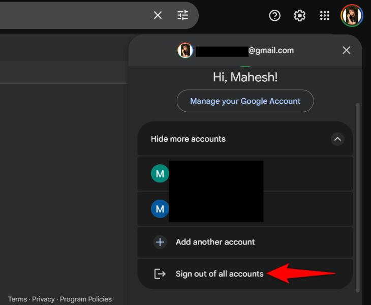 - 選ぶサインアウトまたはすべてのアカウントからサインアウトします。