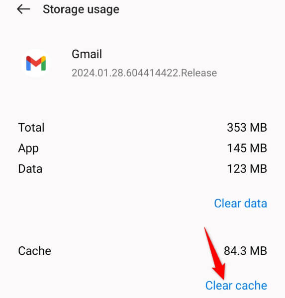 問題が続く場合は、Android携帯電話のGmailアプリのキャッシュファイルをクリアします。これにより、アプリの一時ファイルが削除され、多くのアプリの問題を修正するのに役立つ場合があります。この手順をAndroid電話でのみ実行できることに注意してください。