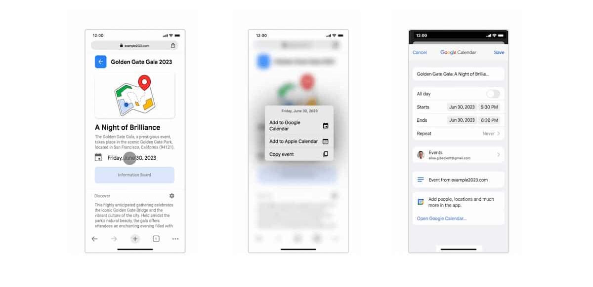 これで、ユーザーはiOSブラウザー用のChromeでGoogleカレンダーイベントを直接作成できるようになりました。情報をコピーしたり、アプリを切り替えたりすることなく、ユーザーは日付を押し続けて、Googleカレンダーに追加するオプションを選択できます。