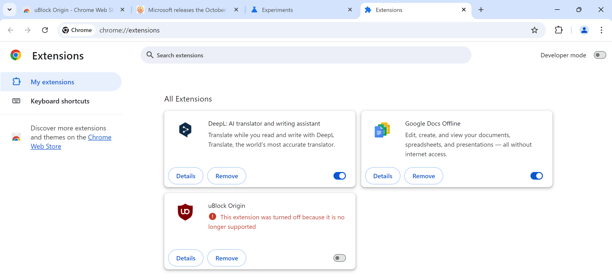 ますます多くのGoogle Chromeユーザーが、サポートされていないために1つまたは複数の拡張機能がオフになっていることを通知するポップアップ通知を受信しています。