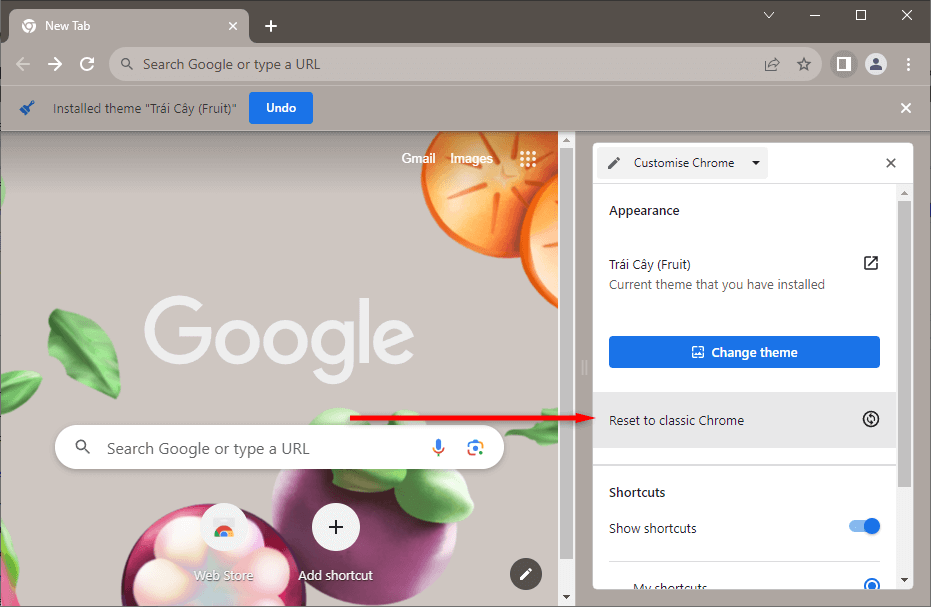 まだ問題が発生している場合は、Google Webストアを介してテーマをアンインストールして再インストールすることを試みることができます。