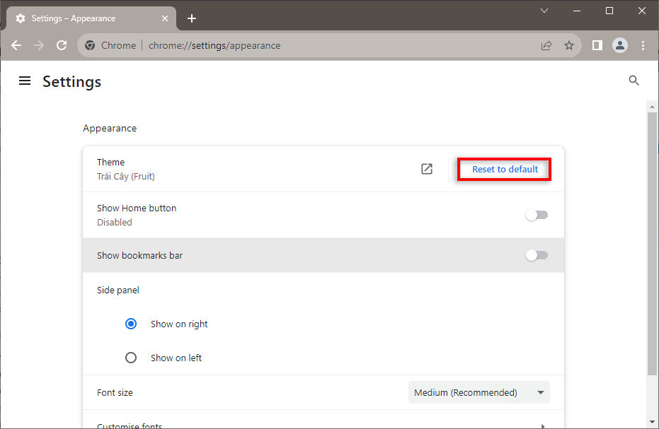 - Chromeブラウザを再起動すると、テーマはデフォルトに戻ります。