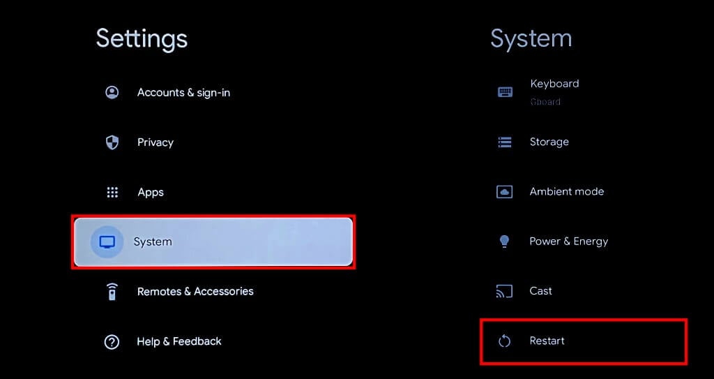システムの再起動を実行すると、ChromecastおよびChromecast Voice Remoteでグリッチを修正できます。 Google TVの設定から、またはストリーミングデバイスを電源に再接続することにより、Chromecastを再起動できます。