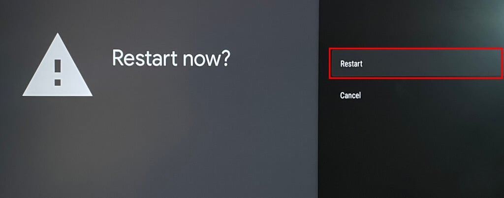 - 選択します再起動再度確認ポップアップで、Chromecastデバイスを再起動します。