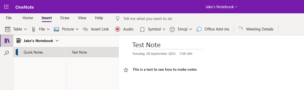 OneNoteは、Google Keepとほぼ同じ方法で機能します。 1つの違いは、それがノートブックに整理されており、個々のメモが本のページのように振る舞うことです。 Webおよびデスクトップアプリで、最初に入力するノートブックを選択します。入ると、メモを追加および編集し、タグを追加し、ノートブックをカスタマイズすることができます。