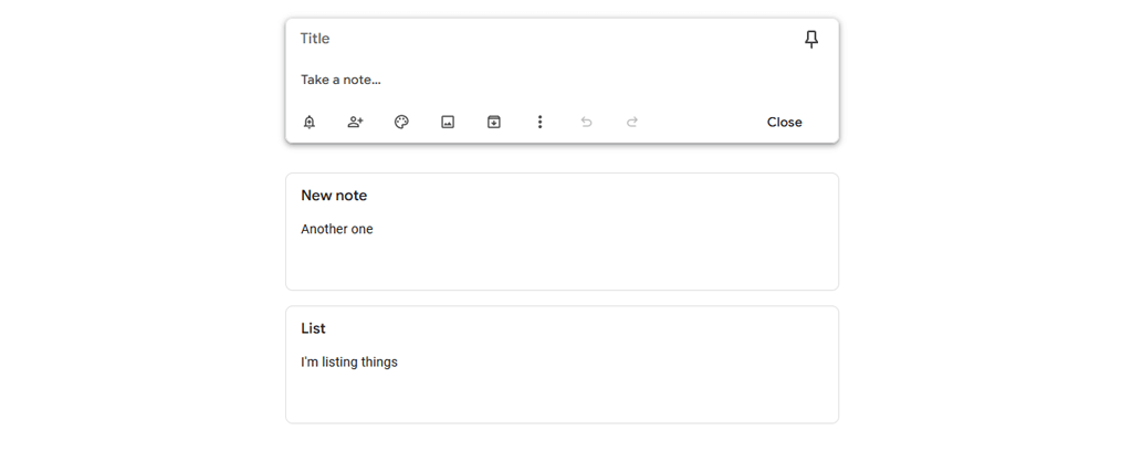Google KeepのWebバージョンでは、デジタルノートが「フィード」またはリストに表示され、最近作成されたメモが上部に表示されます。メモを追加するには、選択するだけですメモを取ってください…セクションとタイピングを開始します。