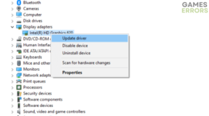 - 右クリックします「Intel(R)HD Graphics 620」(または他の時代遅れのドライバー)と選択を選択します。ドライバーを更新します。」
