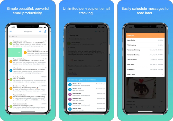 チームの場合、Polymailは共同ツールを提供し、メールを共有してコメントを残すことができ、コミュニケーションをよりスムーズにします。自動化されたアウトリーチ機能を使用すると、メールやフォローアップをスケジュールできます。これは、販売やマーケティングを処理するビジネスユーザーに最適です。ただし、これらの高度な機能のほんの一部のみがモバイルバージョンで利用可能になります。