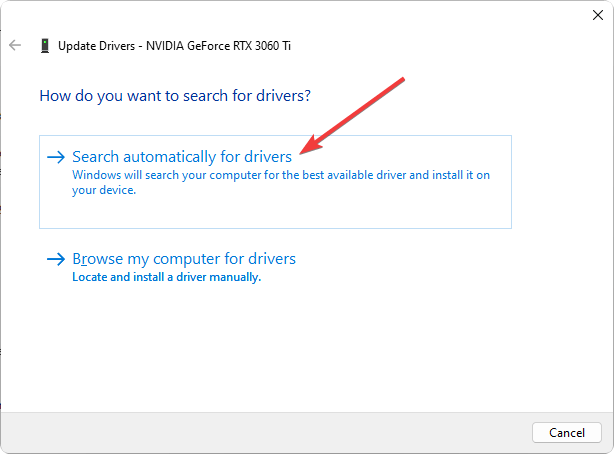 - クリックしてくださいドライバーを自動的に検索しますドライバーを更新します。