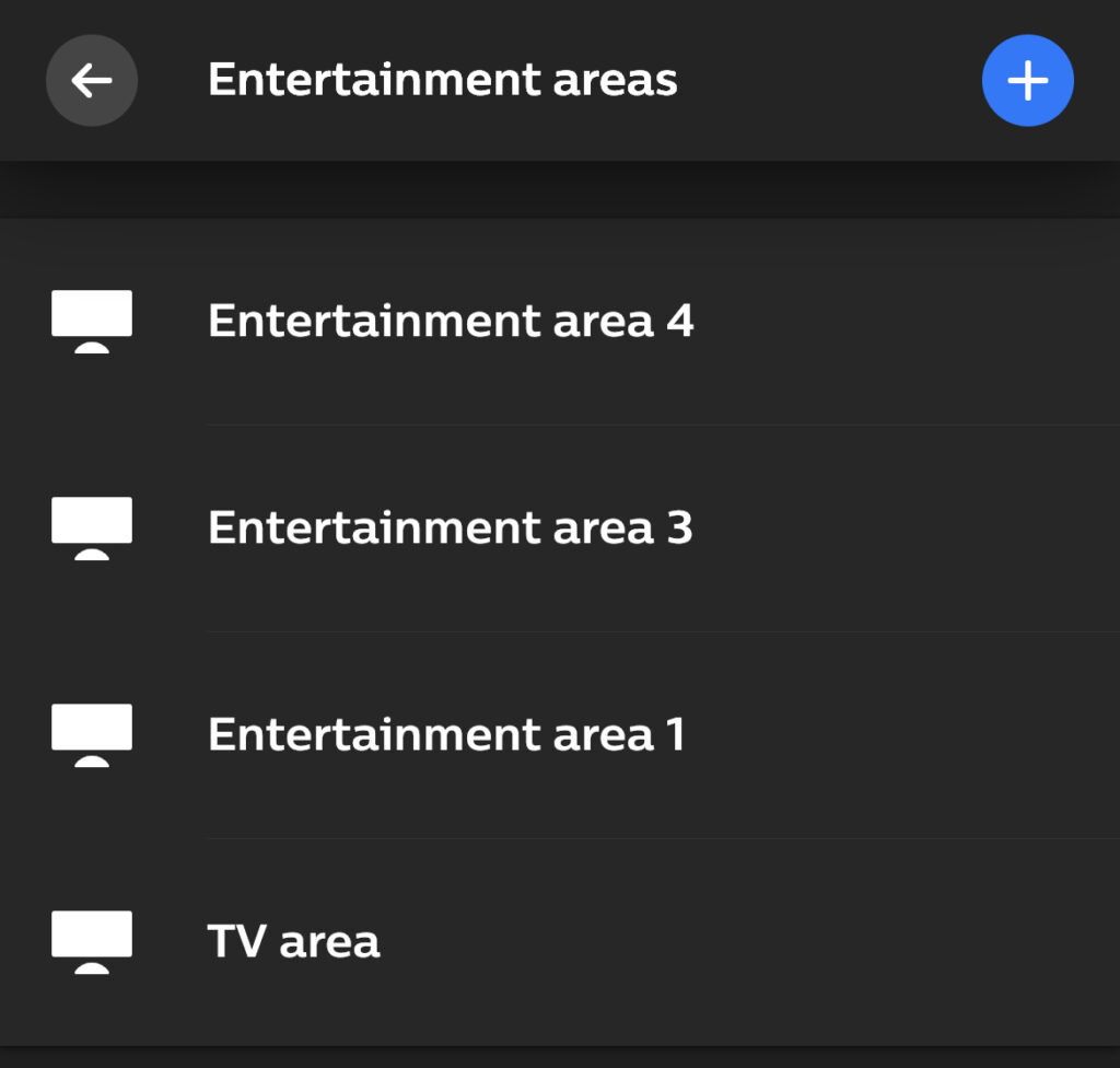 エンターテインメントエリアを開くと、いくつかのオプションが表示されます。エリアの名前の横にあるトグルをスライドさせるか、その下にスライダーを置いて明るさを調整することで、ライトをオンまたはオフにすることができます。シーン、ゲーム、音楽、ビデオの間で反映されるエンターテイメントの種類を選択できます。