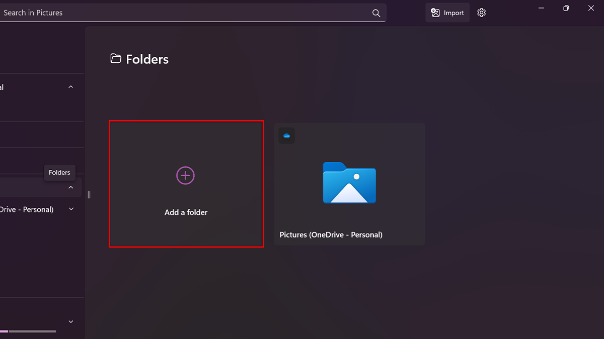 - 開きます写真アプリ> [オン]をクリックしますフォルダー左ペインに。