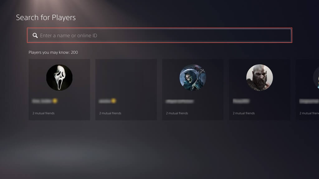 - マルチプレイヤーで最近プレイしたプレイヤーは自動的に表示されるはずです。特定の人を検索するには、検索フィールドにPSN IDを入力します。また、本名とプロフィール写真が公開されていると思われる場合は、その人の本名を入力することもできます。