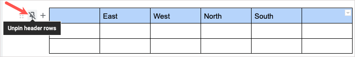 ピン留めヘッダー行を削除するには、を選択しますピン列を固定するか右クリックして選択した後、それを通る線があるツールバーのアイコンUnpin Header行。