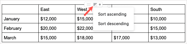 Googleドキュメントのテーブルを並べ替えます