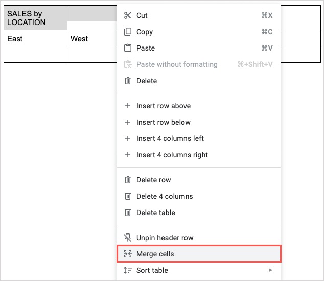 - 選択したセルを右クリックして選択しますセルをマージしますショートカットメニュー。
