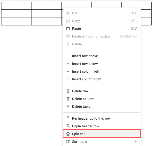 また、テーブルで反対を行い、セルをマージするのではなく、セルを分割することもできます。これは新しい機能の1つですGoogleは2022年10月にドキュメントに追加されました。