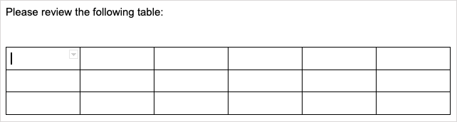 その後、選択した場所にテーブルが表示され、テキストをテーブルセルに入力し始めることができます。