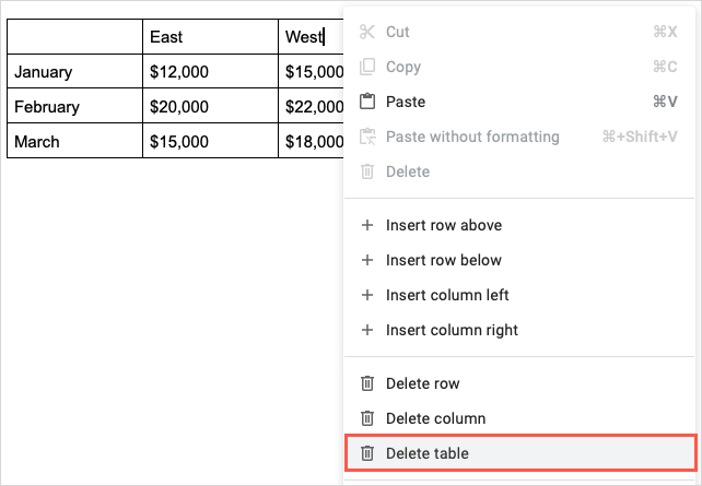 Googleドキュメントでテーブルを削除します