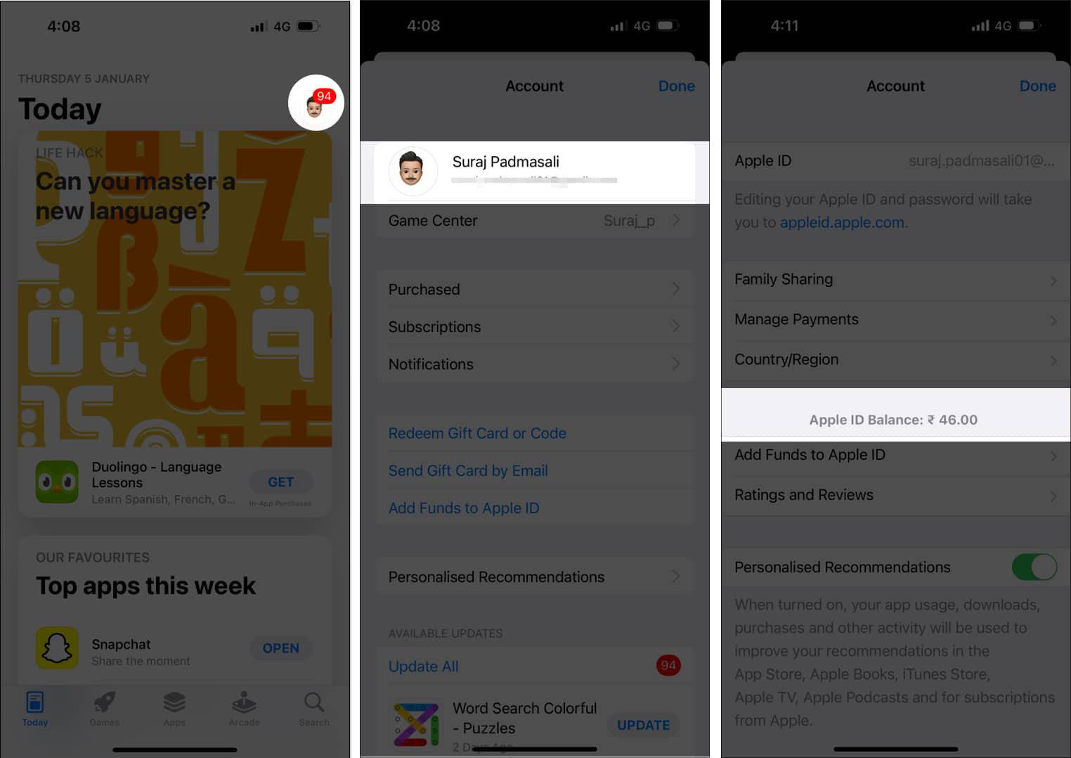 Apple IDに資金を追加することに成功したら、利用可能なクレジットを確認できます。