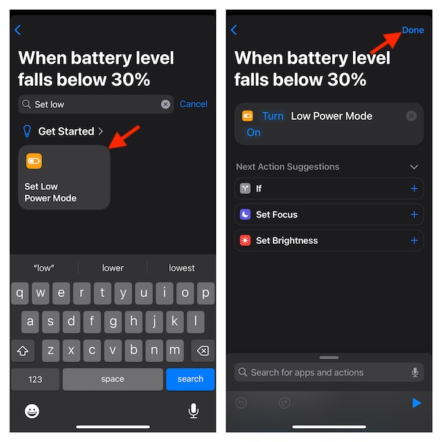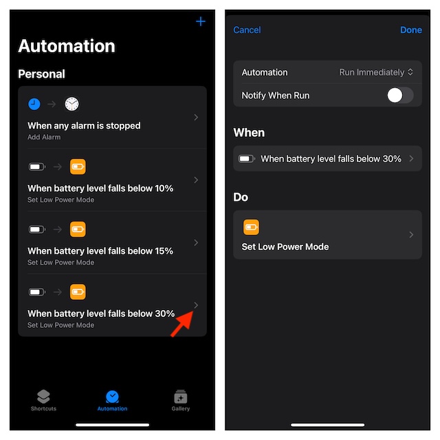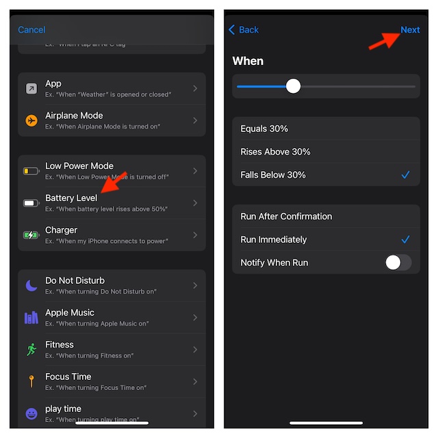 これからは、iPhoneのバッテリーレベルが選択された特定の割合に達すると、個人の自動化が始まります。