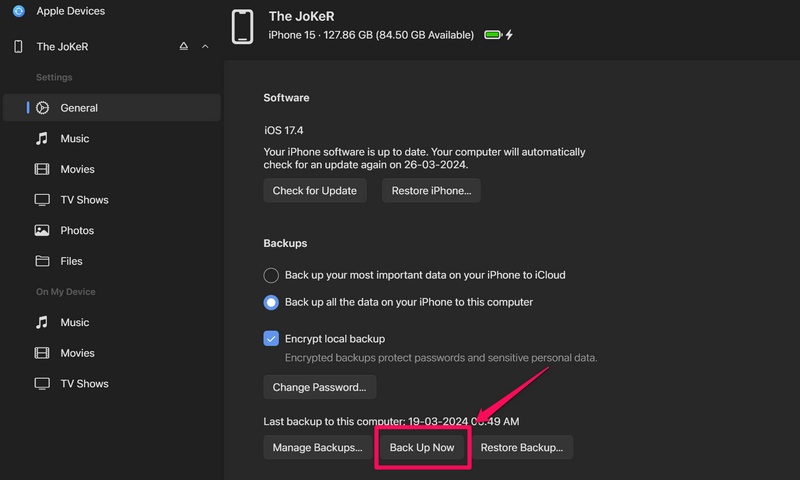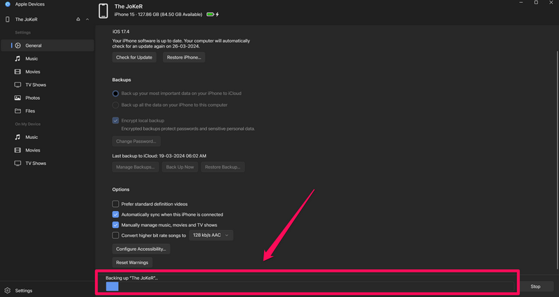だから、それは基本的にそれです!これは、Appleデバイスアプリを使用して、Windows 11 PCまたはラップトップにiPhoneのローカルバックアップを作成する方法です。
