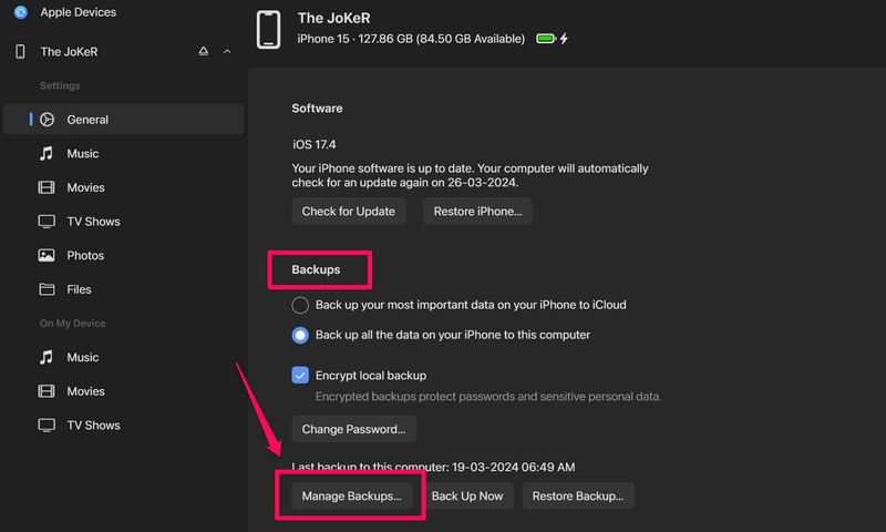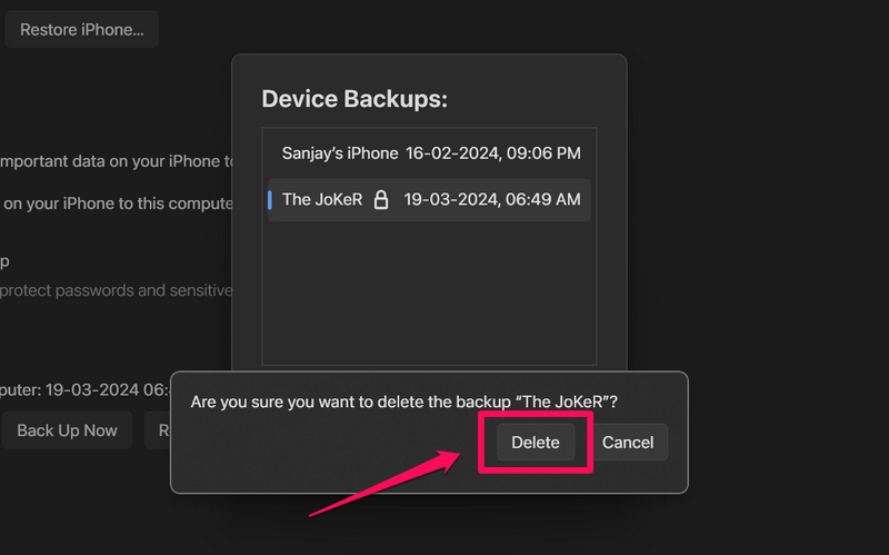 これで、Windows 11 PCまたはラップトップにiPhoneデータのローカルiPhoneバックアップの作成とは別に、Apple Devicesアプリを使用して既存のバックアップを削除することもできます。以下の手順をチェックして、次の方法を確認してください。