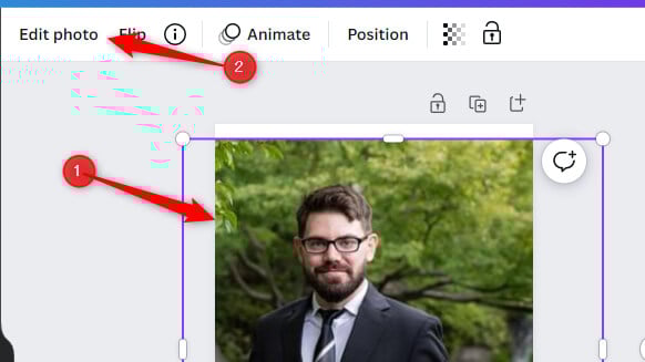 - 次に、写真をクリックして選択し、クリックします写真を編集しますツールバーで。