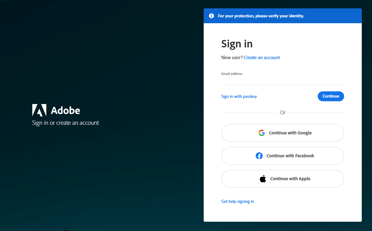 - ログインしていない場合は、Adobeがプランページにリダイレクトする前にサインインの詳細を入力するように依頼します。