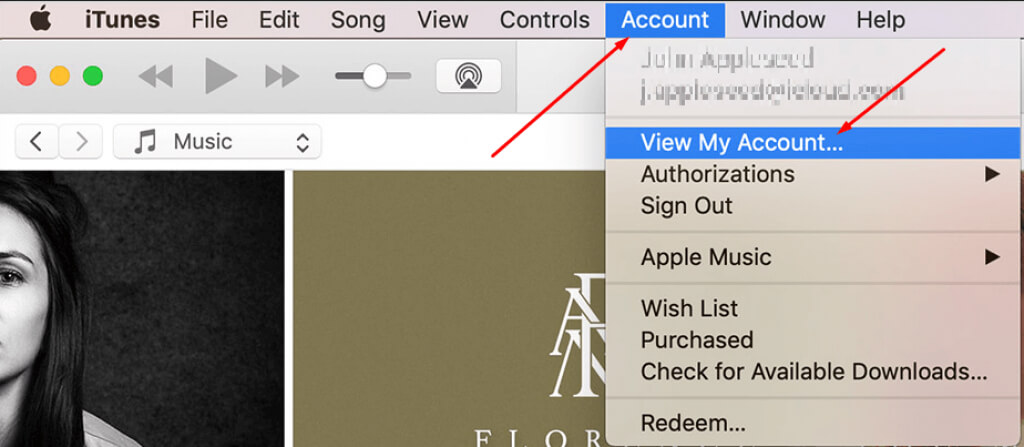 - iTunesアプリを開いてクリックしますアカウントトップメニューから。