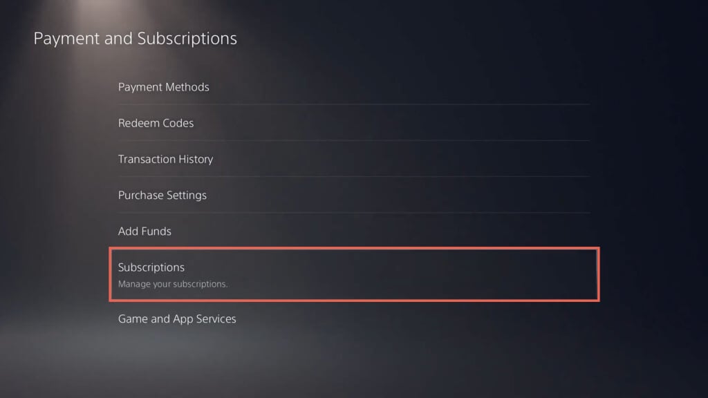 - 選択しますサブスクリプション(ps5)またはPlayStationサブスクリプション(PS4)。