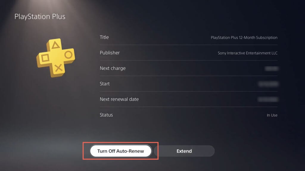 次のサブスクリプションサービスリストで、タップします自動更新をオフにしますの隣にPlayStation Plus。サービスに再登録するには、同じ画面に戻ってタップします自動更新をオンにします。または、選択します伸ばすサブスクリプションの期間を手動で支払い、延長します。