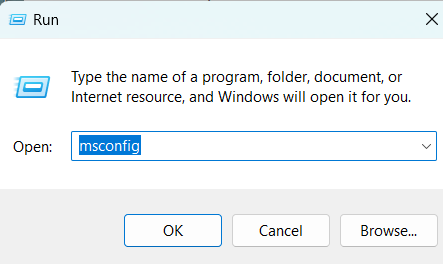 1.実行プロンプトでMSCONFIGを入力して、システム構成を開きます。