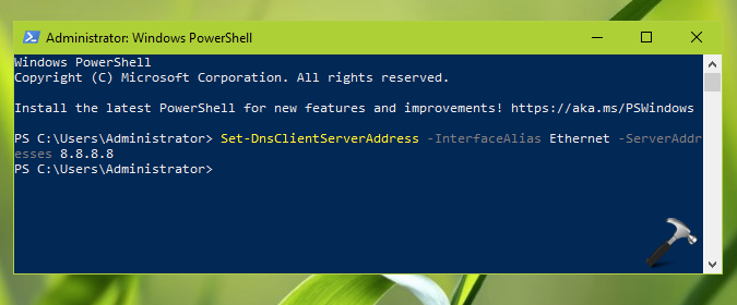 Set-DnsClientServerAddress -InterfaceAlias Ethernet -ServerAddresses 8.8.8.8