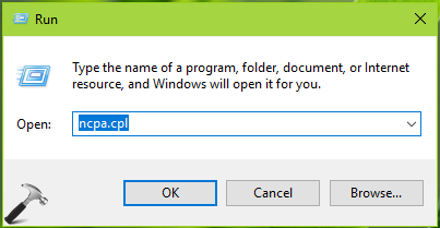 + r実行するには、入力しますNCPA.CPLクリックしますわかりました。
