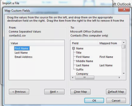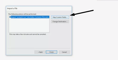 9。を押します仕上げるボタンと、Outlookアカウントのアドレス帳に追加するすべての列を選択します。