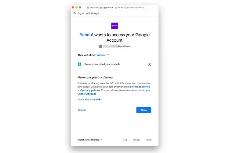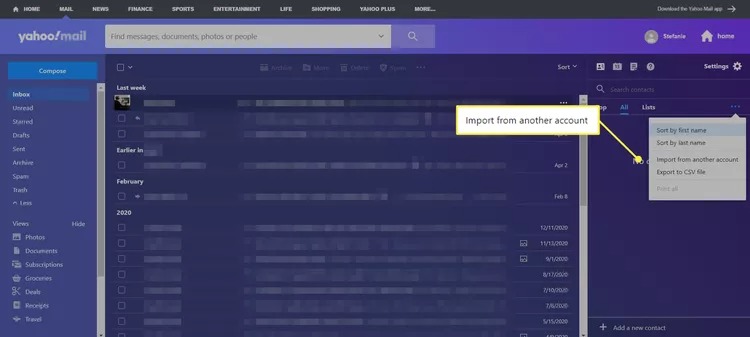 5。Yahoo!メールは、選択したメールアカウントからすべての連絡先を自動的にインポートします。