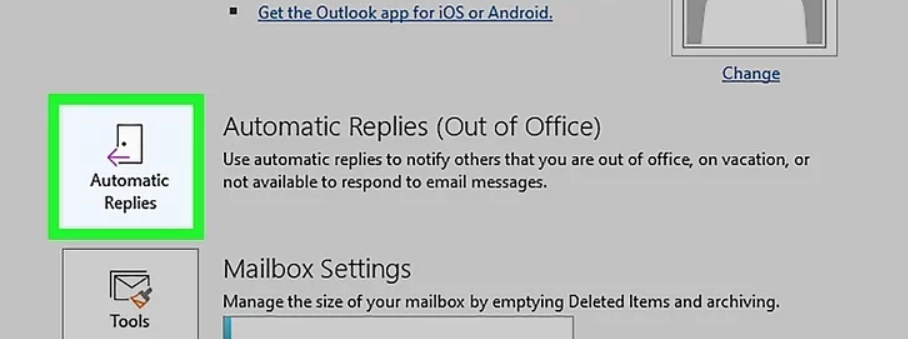 以下の手順に従って、Outlookの電子メールの変更について、着信電子メールへの自動返信を送信します。