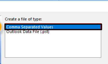 4。選ぶコンマ分離値でファイルにエクスポートしますウィンドウをクリックします次に>ボタン。