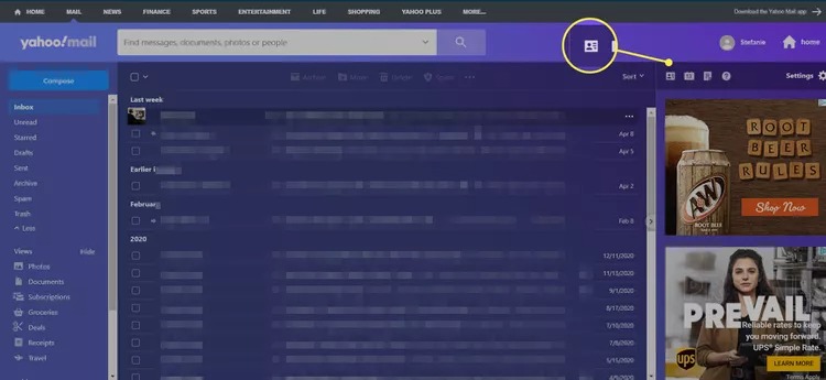 3。クリックしてくださいメールボックス左のナビゲーションペインで、Yahoo!をクリックしてください!下のメールアカウントメールボックスリスト。