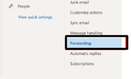 3。選択します郵便左ナビゲーションペインから、次に選択します転送サブメニューからのオプション。