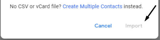 4。ファイルがアップロードされたら、クリックします輸入プロンプトのボタンと連絡先をアップロードします。