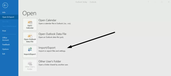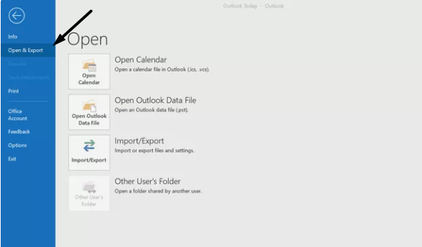 2。選択しますオープン&エクスポート左のナビゲーションペインから、次にクリックしますインポート/エクスポートタイトル。