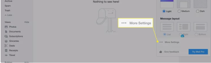 2。をクリックしますその他の設定すべてのメールアカウント設定を表示および管理するオプション。