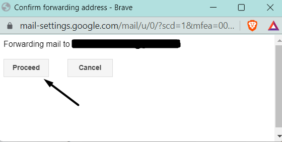 5。に転送アドレスを確認しますプロンプト、をクリックします進む先に移動するボタン。
