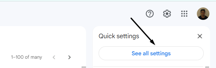 2。を選択しますすべての設定を参照してくださいGmailアカウントの設定にアクセスするためのポップアップサイドバーからのオプション。