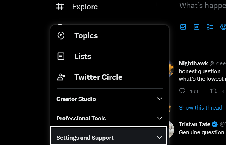 2。をクリックしますもっと (…)左サイドバーのオプションと展開します設定とサポートセクション。