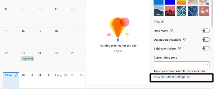 2。をクリックしますすべてのOutlook設定を表示しますのリンク設定設定にアクセスするパネル。