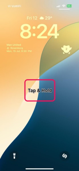 2。今、空白の領域をタップして保持しますロック画面で開きますコレクションページ。