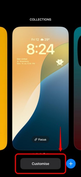 3。次に、タップしますボタンをカスタマイズします現在のロック画面用。