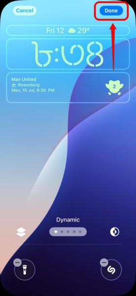 10。タップします完成したボタンiOSデバイスのロック画面のカスタマイズ画面を終了します。